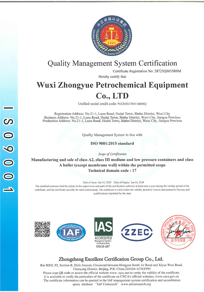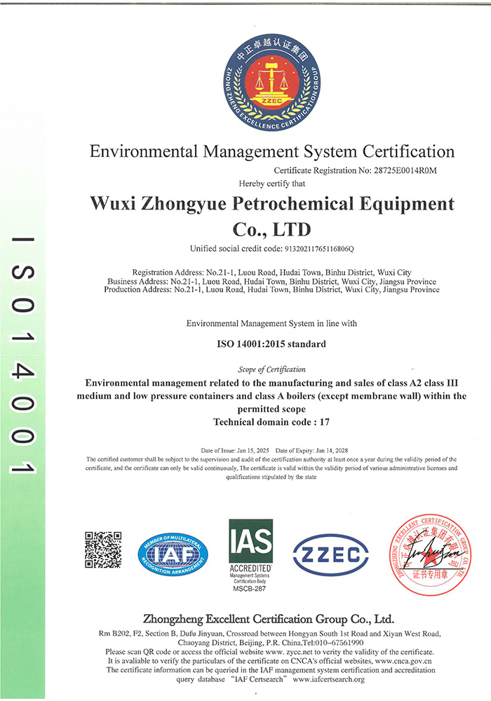 中岳石化下設(shè)四個控股子公司——無錫市中岳石化設(shè)備有限公司、無錫華凱環(huán)境工程有限公司、山西中岳實業(yè)有限公司、武漢中岳節(jié)能技術(shù)有限公司。總部位于經(jīng)濟發(fā)達的長江三角洲,風(fēng)景秀麗的太湖之濱——無錫市胡埭工業(yè)園區(qū)。是專業(yè)生產(chǎn)石油、化工、醫(yī)藥、染料、冶金、環(huán)保、焦化等行業(yè)用成套設(shè)備的專業(yè)公司。公司銀行資信等級4A級,公司注冊資金:3080萬,并獲得江蘇省高新技術(shù)企業(yè)、無錫換熱技術(shù)工程裝備中心證書,同時也是國內(nèi)外主要工程公司設(shè)計院的合格供應(yīng)商。